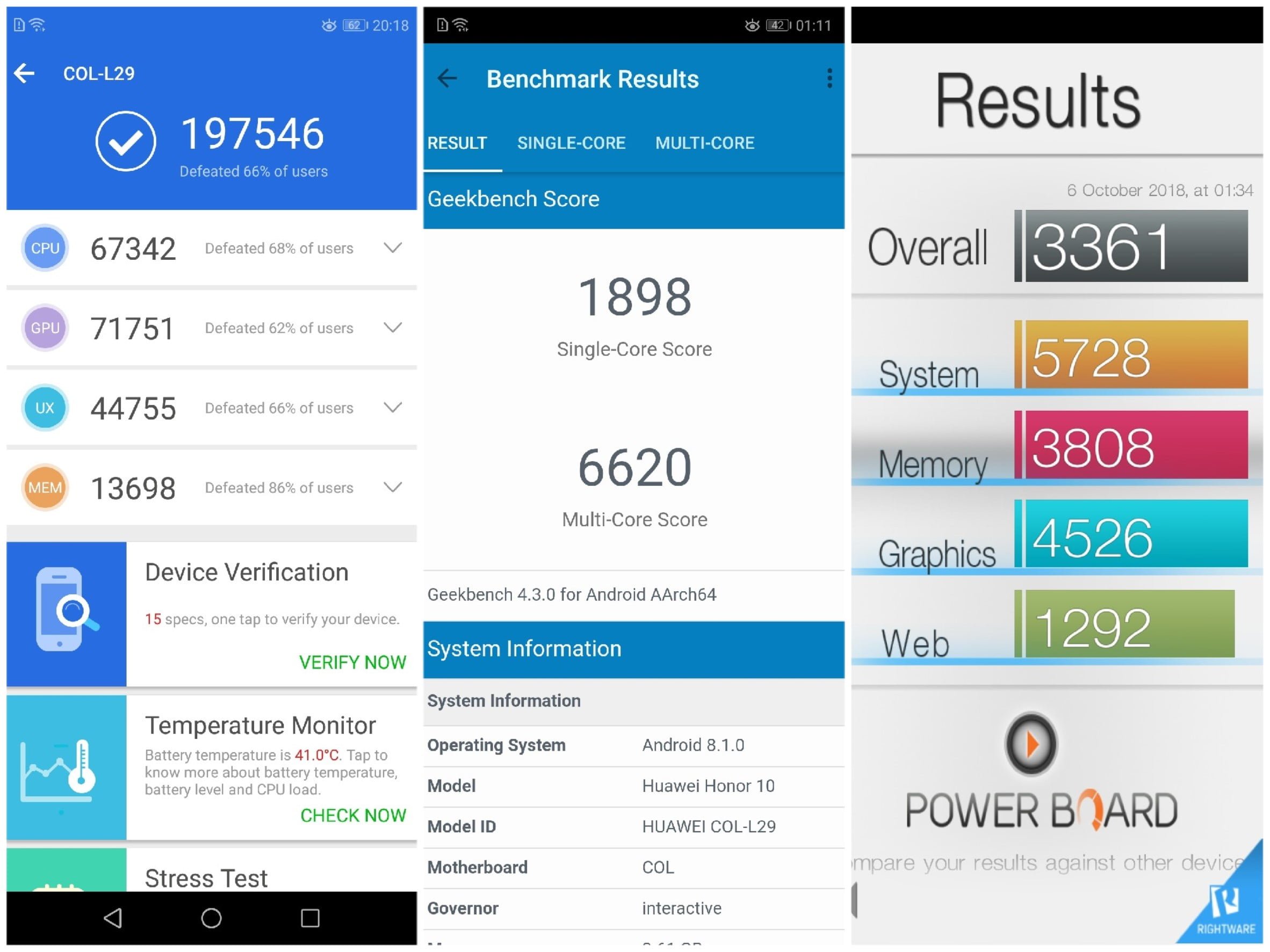 آنر 10 شاید سریعترین گوشی موجود در بازار نباشد، اما هیچ انسان واقع بینی هم چنین انتظاری از یک گوشی 400 یورویی ندارد. این گوشی حتی در این بازه قیمتی توانسته پابهپای گوشیهایی که با جدیدترین چیپست اسنپدراگون عرضه شدهاند از نظر عملکرد فنی به رقابت بپردازد. حتی در هنگام انجام عملیات سنگین نرمافزاری مانند بنچمارکها یا بازیهای جدید با گرافیک بالا مانند PUBG نه تنها شاهد هیچگونه لگ و کندی قابل توجهی نبودیم، بلکه گرم شدن گوشی نیز در آن حدی نبود که باعث شود اجرای برنامه دچار مشکل شود و یا برای خنک شدن نیاز به throttling پیدا کند.