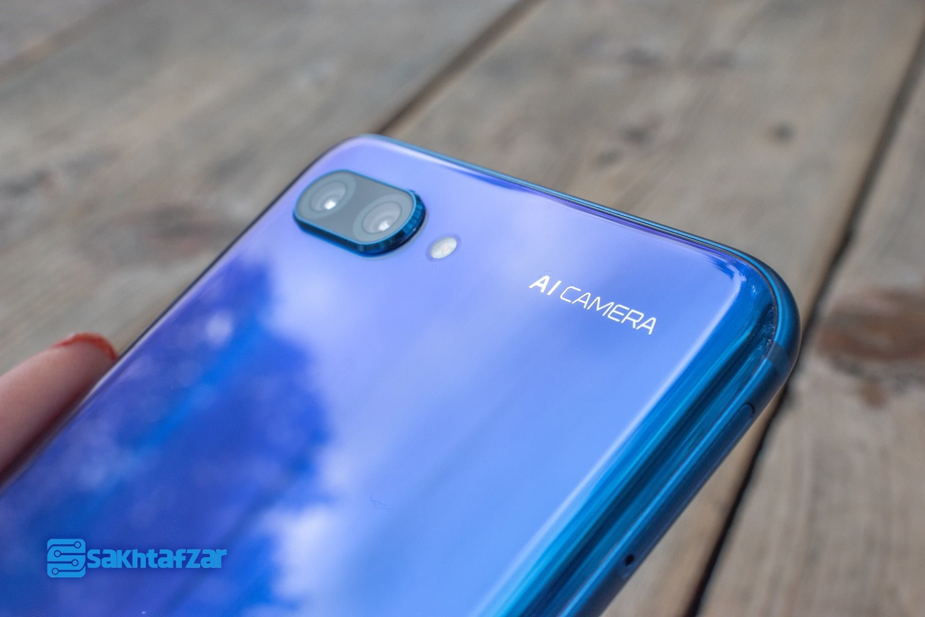 قاب پشتی این گوشی اگر زیباترین طراحی را در میان گوشیهای هوشمند نداشته باشد، بدون شک یکی از زیباترینها به حساب میآید. آنر باز هم از فناوری CMF برای طراحی و ساخت این قاب بهره برده است، جاییکه 15 لایه شیشه ساخته شده با پوششهای متفاوتی از نانو بر روی یکدیگر قرار گرفتهاند تا جلوه زیبا و کم نظیری از ترکیب انعکاس نور و تغییر رنگ را در برابر چشمان کاربر به نمایش بگذارد. در نسخههای Phantom Green و Phantom Blue بیشترین تأثیر این طراحی را میتوان مشاهده کرد. در توصیف زیبایی این قاب میتوان تا مدتها صبحت کرد، اما بهتر است که “فعلاً” این بخش را کنار گذاشته و به ادامه بررسی طراحی این گوشی بپردازیم. دوربینهای اصلی این گوشی به همراه یک فلش LED با چینش افقی در لبهی بالایی سمت چپ گوشی جای گرفتهاند. در امتداد دوربینها عبارت “AI Camera” را میبینم که بهتر بود همچنان در تبلیغات شاهده آن بودیم تا قاب پشتی گوشی. در قسمت میانی پایین قاب هم شاهد لوگوی برند آنر و توضیحات مختصری در خصوص این گوشی هستیم.