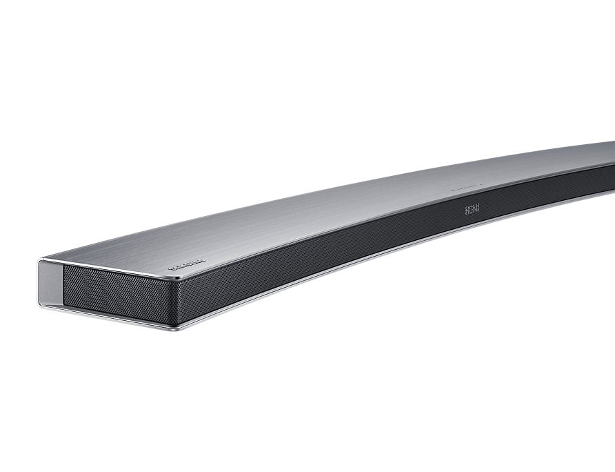ساندبار مدل J7591R سامسونگ به شکل منحنی طراحی شده است، این موضوع به همراه رنگ نقرهای آن موجب شده تا J7591R جلوهای زیبا را به میزهای تلویزیون ببخشد. همچنین برای کاربرانی که تلویزیون خود را به شکل دیواری نصب کردهاند، این امکان به وجود آمده تا به راحتی و با کمک براکت دیواری ساندبار را در زیر تلویزیون نصب کنند.