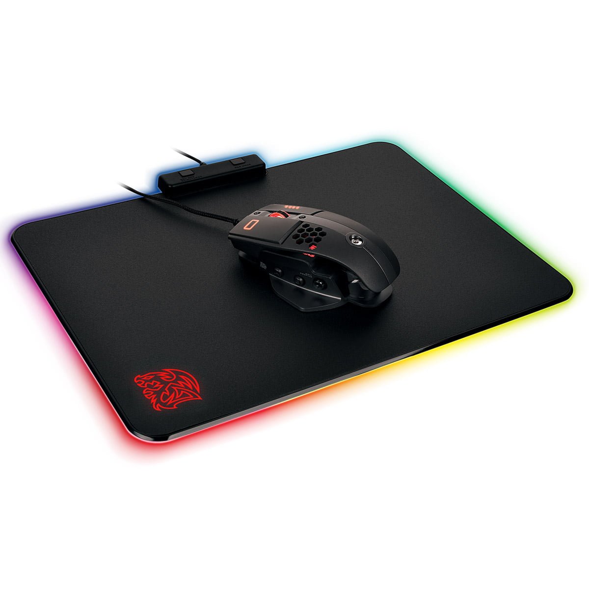 استفاده از عبارت RGB در نام این محصول به ما میگوید که این مدل دارای LED های رنگی با قابلیت پشتیبانی از ۱۶.۸ میلیون رنگ است. کابل متصل به ماوس پد توان مورد نیاز برای روشن کردن LED ها را از پورت USB کامپیوتر دریافت کرده و به کمک دکمه های بالای ماوس پد می توان رنگ ها، شدت نور و افکت تصویری روشن شدن LED ها را تغییر داد. متاسفانه این کابل قابل جدا شدن نیست و حتی اگر نخواهید از LED ها استفاده کنید، باز باید کابل متصل به ماوس پد را تحمل کنید.