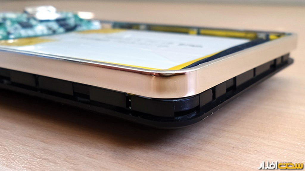 روی سطح پاوربانک هیچ اثر انگشتی برجای نمی‌ماند. کیفیت ساخت بدنه بسیار عالی است و از پلاستیکی با کیفیت و محکم در ساخت آن استفاده‌شده است. اسکلت اصلی تا زیر قاب نقره‌ای دور آن پیش‌رفته و این اطمینان را به کاربر می‌دهد که در ضربات فیزیکی سخت هم باتری و اسکلت اصلی دچار صدمه جدی نخواهند شد (تصویر 2).