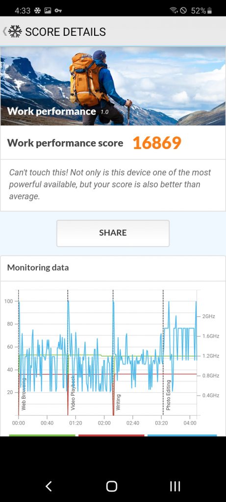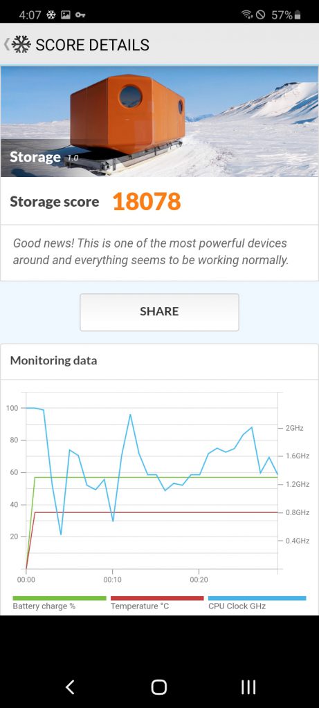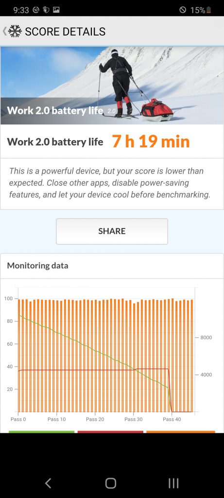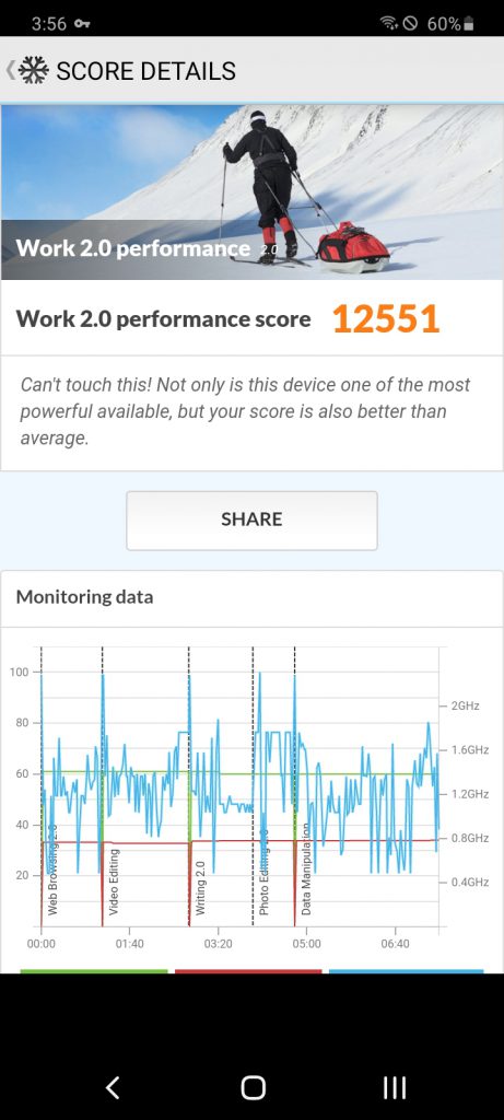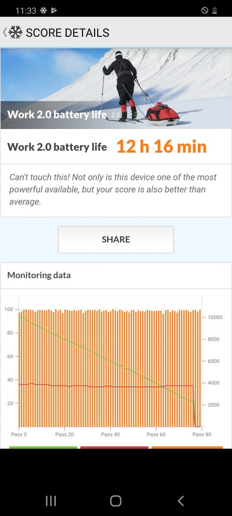 البته این تست در حالتی که نمایشگر بر روی حالت 60 هرتز و رزولوشن ماکزیمم تنظیم شده بود، انجام شده است و در صورتی که نمایشگر بر روی حالت 120 هرتز باشد، زمان استقامت باتری کوتاهتر خواهد بود. این موضوع حتی در استفاده روزمره از گوشی هم به همین صورت است. یعنی با فعال کردن حالت 120 هرتز مصرف باتری به طرز چشمگیری بالاتر خواهد رفت. اما در حالت 60 هرتز و با استفاده نرمال، باتری S20 حداقل تا یک روز بینیاز از شارژ خواهد بود.