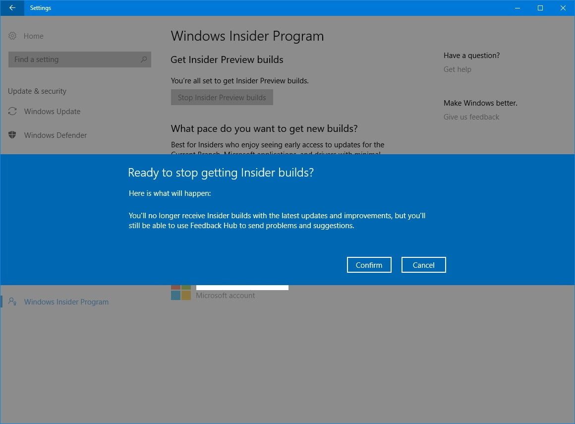- سپس گزینه ی Stop Insider Preview Builds را انتخاب کنید.