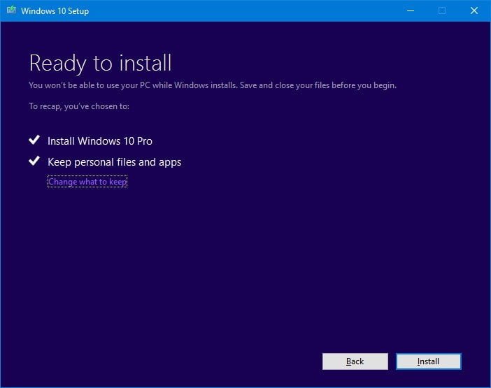 پس از انجام مراحل بالا، بروزرسانی جدید مانند بروزرسانی های معمولی بر روی سیستم شما نصب میشود و فایل ها و برنامه های ویندوز شما دست نخورده باقی میمانند. وابسته به سخت افزار دستگاه شما و البته سرعت اینترنت، نصب بروزرسانی حداقل 20 دقیقه طول خواهد کشید. پس از نصب بروزرسانی از این طریق پیکربندی برخی قسمت ها مانند حریم شخصی ممکن است لازم باشد. این روش برای کاربرانی که خواهان نسخه ی نهایی هستند و در عین حال میخواهند خیلی زود نسخه ی جدید را تجربه کنند بسیار مناسب است.