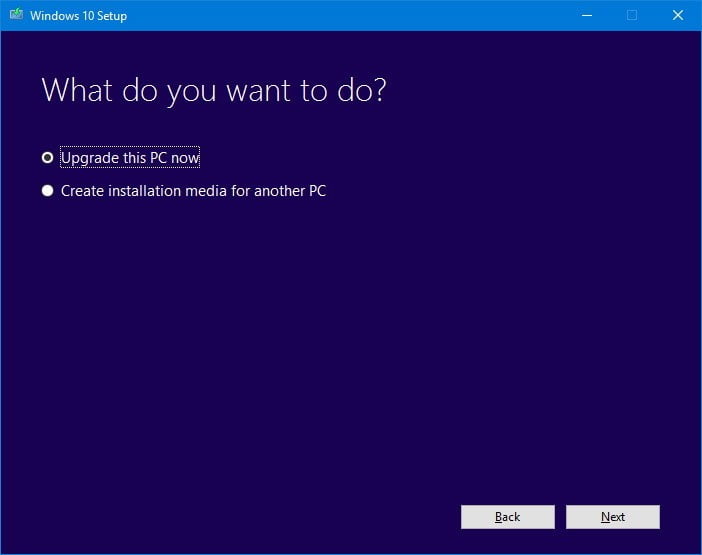 - گزینه ی Upgrade this PC now را انتخاب کنید.