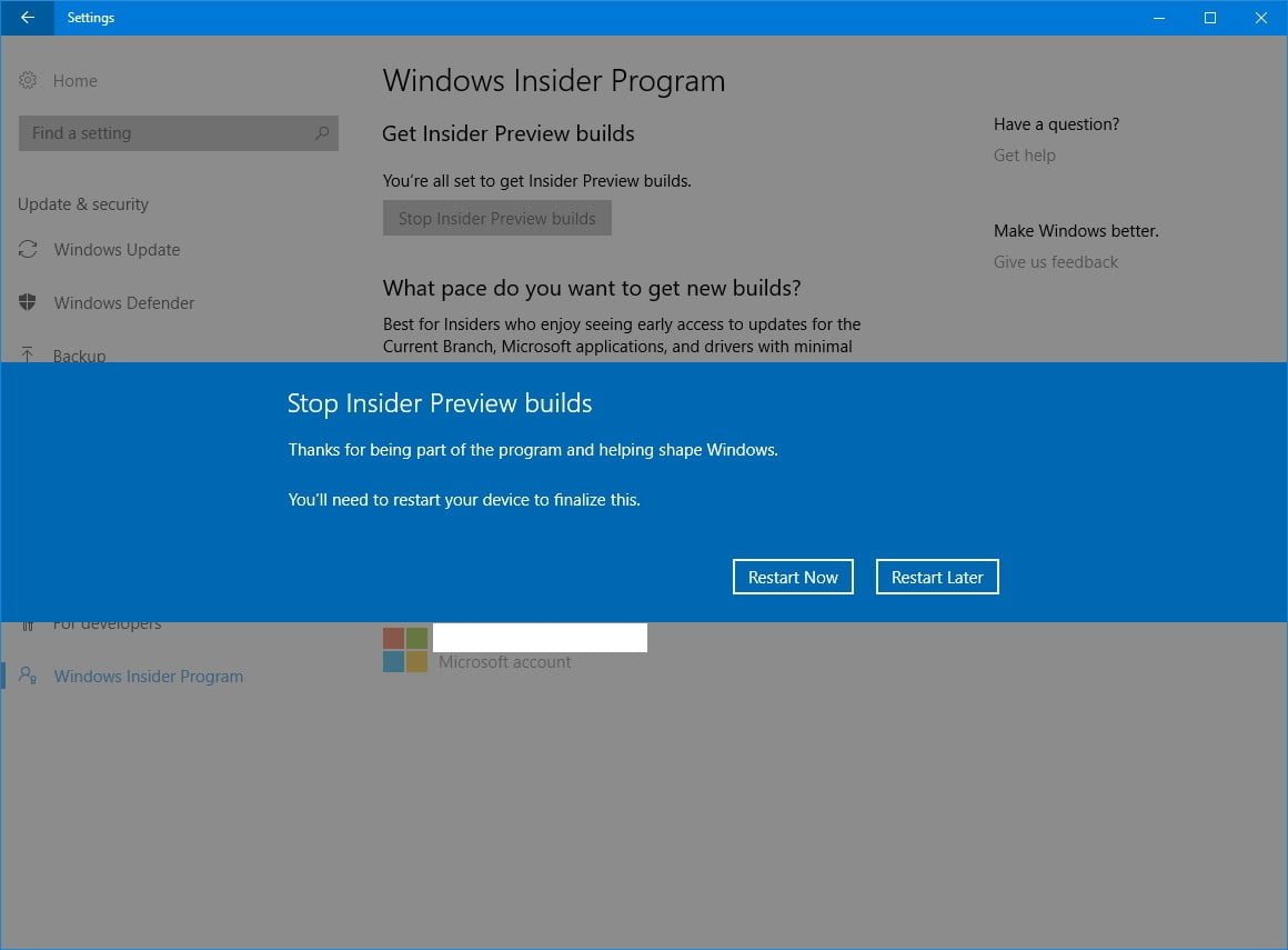 پس انجام مراحل بالا، اکنون شما میتوانید بروزرسانی های ویندوز 10 را قبل از عرضه ی عمومی دریافت کنید. این شامل بروزرسانی Creators نیز میشود. باز هم لازم به ذکر است، حلقه ی Release Preview امن ترین روش برای دریافت بروزرسانی Creators است که نسبت به حلقه های سریع و آهسته کمی دیرتر بروزرسانی ها را دریافت خواهید کرد اما این بروزرسانی های این حلقه حداقل مشکلات را دارا میباشند. ضمنا شما میتوانید پس از دریافت بروزرسانی Creators، از داخل مجمع اینسایدر خارج شوید و مجددا به روال عادی قبل بروزرسانی ها را دریافت کنید. برای این کار مراحل زیر را انجام دهید:
