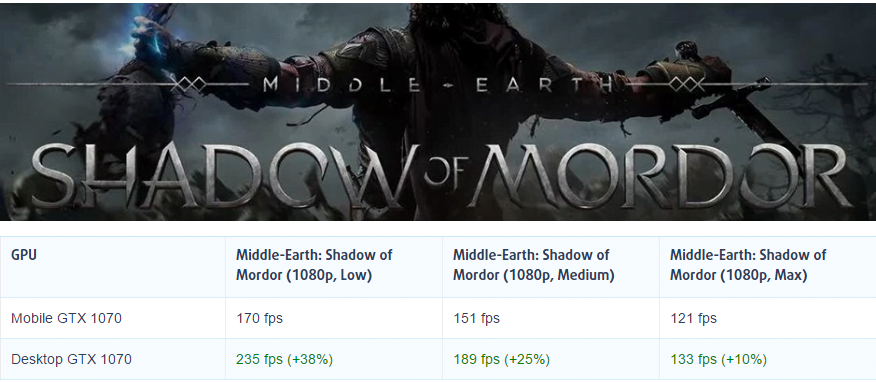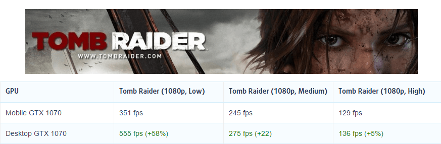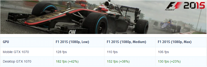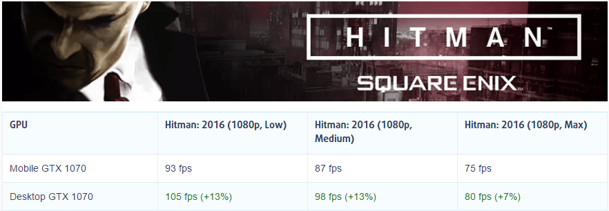 در تصویر بالا،سمت راست،معیار و موتورهای مورد بررسی درج شده است.اختلاف توان GTX1070 در نسخه نوت بوک،با پرچمدارن پیشین بسیار زیاد است.حتی کارت گرافیک GTX980 که در اوسط سال 2015 در یک جهش ناگهانی به درون لپ تاپ ها راه یافت،شانس چندانی در برابر GTX1070 ندارد.در ادامه می توانید شاهد اسلاید های بررسی این کارت گرافیک ها در بازی های جدید باشید.