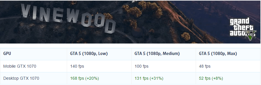 انویدیا با حذف پسوند M از نام کارت گرافیک های لپ تاپ در معماری “پاسکال” نشان داد که اینبار قصد تابو شکنی دارد.در نتیجه این کارت گرافیک ها روانه نوت بوک های جدید شده و مشکلات پردازش های گرافیکی را به حداقل رساندند.فرکانس هسته در GTX1070 نسخه لپ تاپ،برابر با 1443 مگاهرتز الی 1645 مگاهرتز است.نسخه دسکتاپ نیز از فرکانس موثر 1506 الی 1683 مگاهرتز برخوردار است.هر دو کارت گرافیک از 8 گیگابایت حافظه GDDR5 در کنار یک رابط حافظه 256 بیتی بهره می برند.سیلیکون های نسخه دسکتاپ به 2048 هسته CUDA در برابر 1920 هسته CUDA در نسخه لپ تاپی مجهز هستند.