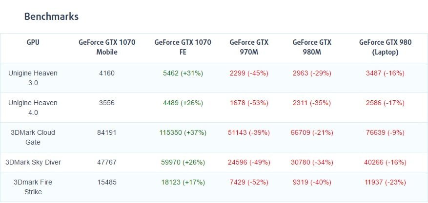 همانطور که می دانید،به تازگی کارت گرافیک های GTX1000 در نسخه های لپ تاپ معرفی شده اند.تفاوت چندانی مابین این کارت گرافیک ها وجود ندارد.یکی از مهمترین تفاوت های این کارت گرافیک ها با نسخه دسکتاپ،در فرکانس هسته است.به بهانه معرفی سری جدید درنده های ایسر،سری هم به بنچمارکهای GTX1070 در برابر کارت گرافیک های GTX980،GTX970M و GTX980M می زنیم.با ما همراه باشید.