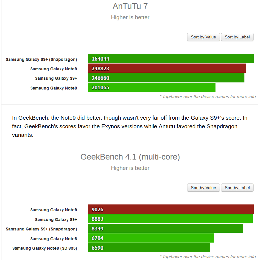 تو تست های گرافیکی نسحه اسنپ اس9+ عملکرد بهتری داره و اگه نسخه اسنپ نوت9 تست بشه همون نتایج به دست میاد.