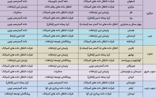 بر اساس جداول منتشر شده، می توان بهترین سرویس دهندگان اینترنت ایران را به صورت جدول زیر معرفی کرد: