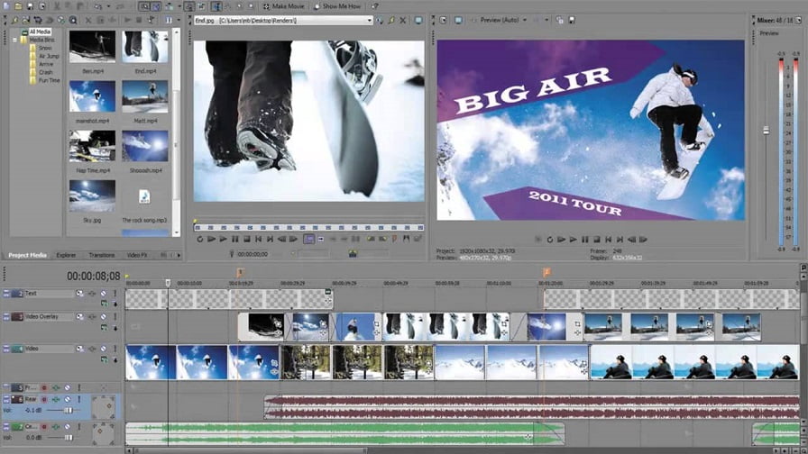 Sony Vegas Pro را میتوان برادر بزرگتر Sony Vegas Movie Studio دانست. این نرم افزار ویژگی های بصری و افکت های جذابی را در اختیار کاربران قرار داده است. همچنین دارای قابلیت 3D، مدیریت صوتی پیشرفته و پشتیبانی از 4K است. البته این نرم افزار میتواند برای کاربرانی که با پرداخت درون برنامه مشکل چندانی ندارند و حاضر به پرداخت هزینه های زیاد هستند؛ بهترین نرم افزار ویرایشگر فیلم باشد.