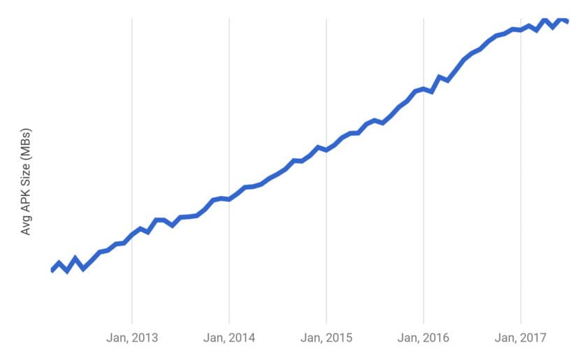 گوگل اخیرا با مشورت توسعه دهندگان اندروید تصمیم گرفته است تا حجم نرم افزارهای اندرویدی را کاهش دهد چراکه بر اساس آمار، حجم بالای اپلیکیشن ها، مانع دانلود آن ها از سوی کاربران خواهد شد. از آنجایی که تمامی فایل های APK رو به افزایش است در نتیجه کاربران فضای کافی برای دانلود اپلیکیشن های مختلف نخواهند داشت و نرم افزارهای حجیم را دانلود نخواهند کرد.