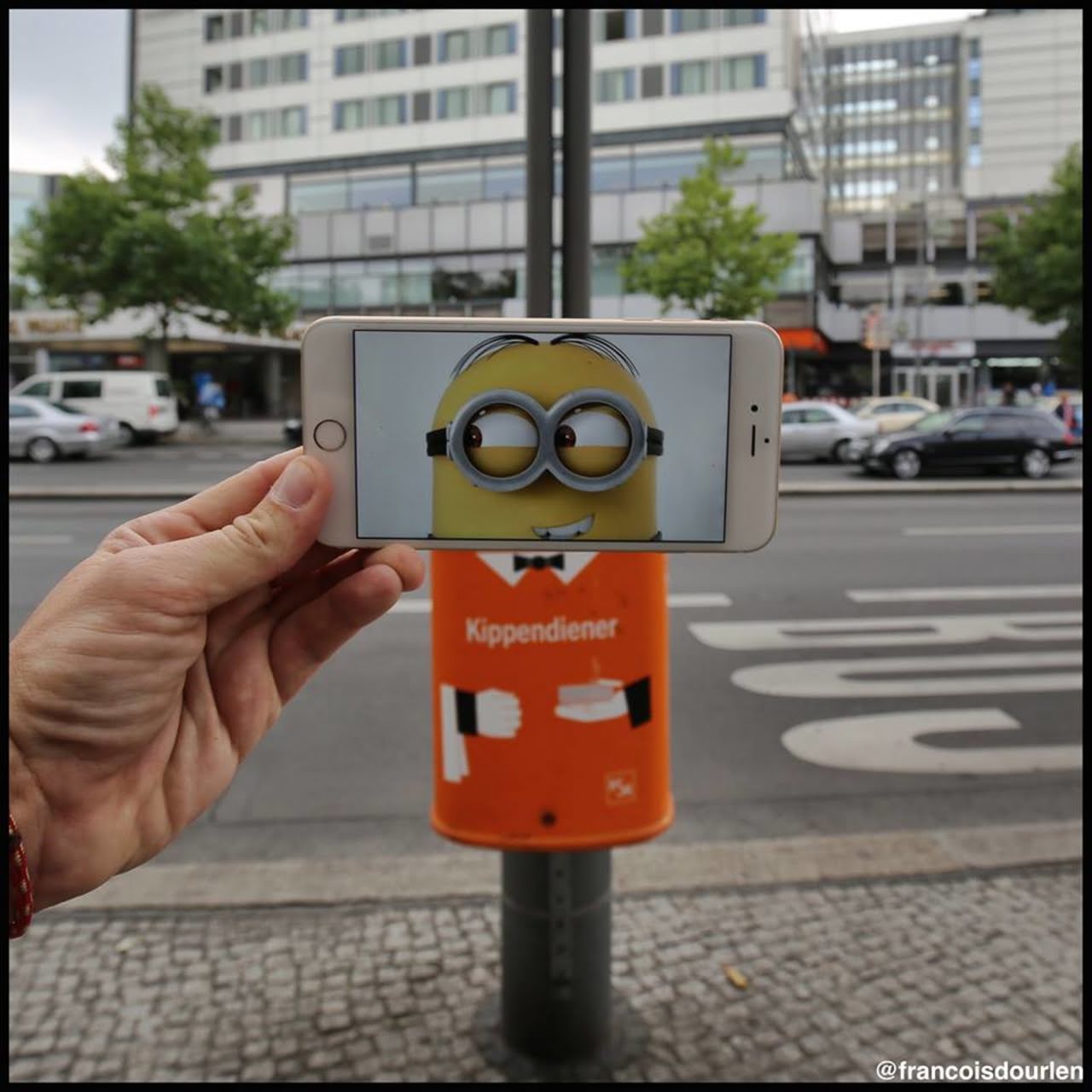 او یک عکس از ستاره های سینمایی یا شخصیت های کارتونی را از فیلم هایشان انتخاب می کند و روی صفحه نمایش آیفون خود قاب می کند ، سپس محیط پیرامون عکس را ماهرانه از دنیای واقعی انتخاب کرده و با استفاده از دوربین DSLR از آنها عکس میگیرد. او عکس هایش را در اکانت فیسبوک و اینستاگرامش منتشر می کند و نزدیک به 81 هزار طرفدار در این فضای مجازی دارد. پیشتر از این عکس های خلاقانه زیاد دیده ایم اما روش کار Dourlen کمی متفاوت است. افزودن چاشنی تکنولوژی به عکس و استفاده از آیفون به عنوان دریچه ای به دنیای دیگر و همچنین تطابق بی نظیر آن با تصویر پس زمینه ، کار های او را تحسین بر انگیز کرده است. در ادامه با هم تعدادی از عکس او را مشاهده می کنیم، علاوه بر این اگر علاقه مند هستید می توانید به اکانت اینستاگرام او نیز با این آدرس  @francoisdourlen مراجعه کنید.