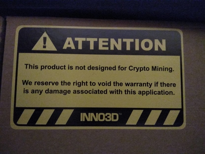 کارت گرافیک هایی که برای استخراج ماینینگ مورد استفاده قرار می گیرند، همواره در حال پردازش هستند و حتی در برخی از سیستم ها، GPU ها به صورت 24/7 مشغول به خدمت هستند. این در شرایطی است که ماینرها عموما به دنبال کارت گرافیک هایی هستند که به صورت نه چندان سفارشی، از کولرهای ساده استفاده می کنند تا بدین ترتیب هزینه های خود را به حداقل برسانند؛ در این شرایط نیز عمر مفید کارت گرافیک به طور چشمگیری کاهش پیدا کرده و به دلیل افزایش دما، احتمال خرابی آنها افزایش پیدا کرده است. Inno3D در یک برچسب، کاربران ماینینگ را تهدید کرده است که در صورت خرابی به دلیل استفاده های ماینینگ، شرایط گارانتی را از روی آنها بر خواهد داشت. Inno3D با این کار تلنگری را به این دسته از مصرف کنندگان وارد کرده است که شاید بدین ترتیب به فکر خرابی محصولات یاد شده باشند؛ اما این مسئله می تواند وجاهت های قانونی را در برخی از نقاط جهان تغییر داده و نیاز به تامل بیشتر در آن احساس می شود. به هر حال این برچسب اولین اقدام از سوی یک تولید کننده سخت افزار است که برای مقابله با این فشار در نظر گرفته شده است.