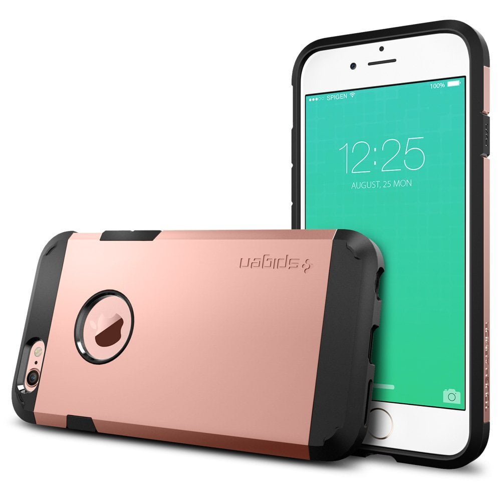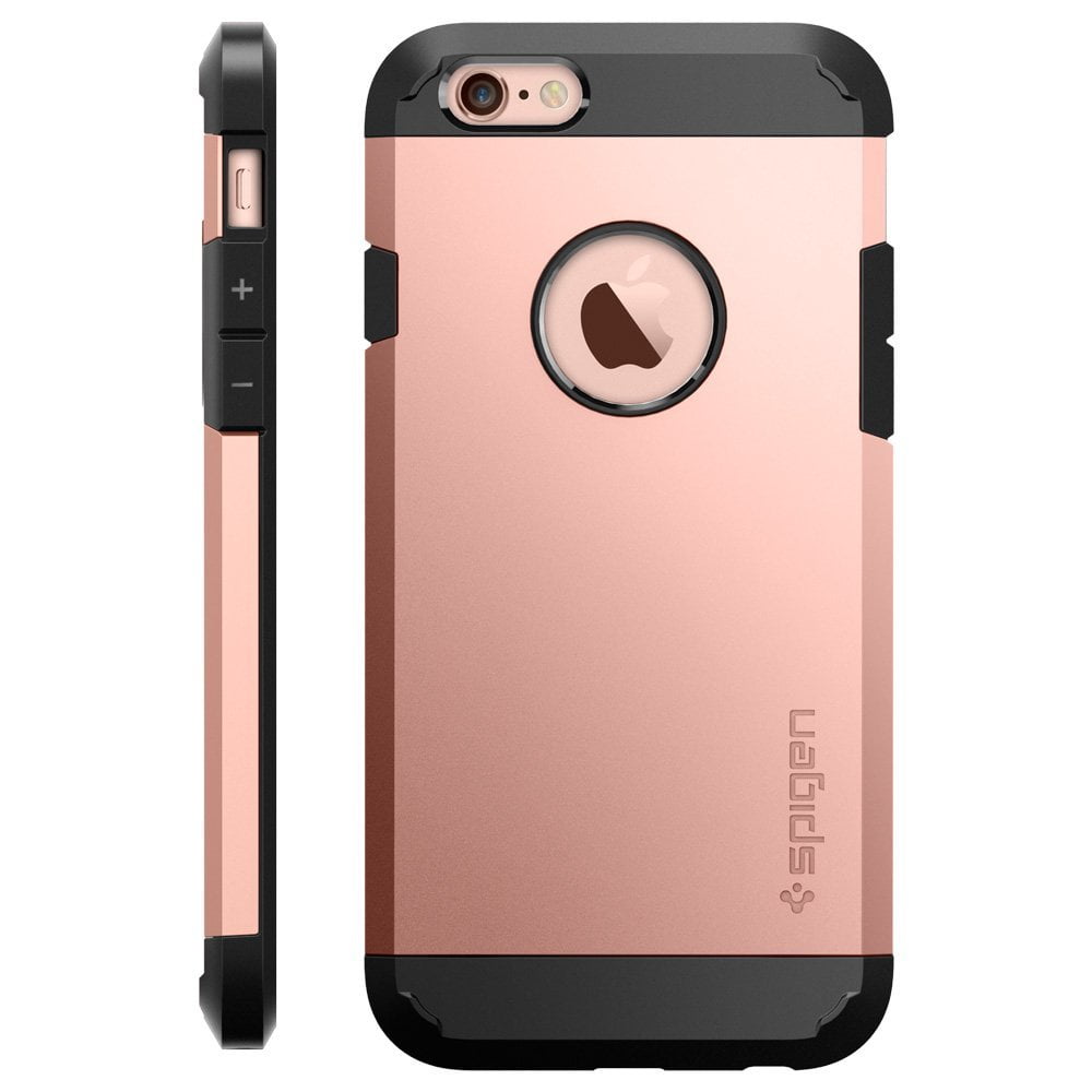 شرکت آمریکایی Spigen واقع در کالیفرنیا سابقه خوبی در تولید قاب های محافظ برای گوشی های هوشمند مختلف به ویژه خانواده آیفون دارد. در بازار داخلی نیز مدتی است که محصولات متنوع آن را می توانیم بیابیم. اگر سری به وب سایت آمازون بزنید و قاب Spigen برای آیفون 6s را جستجو کنید، مدل هایی را خواهید یافت که در چند رنگ عرضه می شوند. یکی از این مدل ها (که تصاویر آن را آورده ایم) در میان انتخاب های خود گزینه سرخ-طلایی (Rose Gold) را هم در اختیار می گذارد و اگر به عکس گوشی درون قاب دقت کنید، بدنه آن را به رنگ داستان ما خواهید یافت. مورد جالب دیگر اینکه قاب ها برای هر دو آیفون 6 و 6s مناسب بوده و همین، یکسان بودن ظاهر و طراحی دو نسل را تایید می کند.