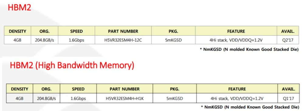 در همان زمان نیز هر دو شرکت خصوصا SK Hynix با مشکلاتی مواجه شدند؛ در زمان عرضه کارت گرافیک های Fury/X انتظارات هر دو کمپانی به چالش کشیده شد و قیمت بالای کارت گرافیک های فیجی یک شک را به بازار تزریق کرد. در نتیجه اسکی هاینیکس تولید این نیمه هادی را به طور چشمگیری کاهش داد. اما کمی بعد و با کاهش قیمت این کارت گرافیک ها از سوی AMD، تمایل کاربران به خرید آنها بالا گرفت که موجب کاهش ناگهانی تراشه های HBM شد. این بی ثباتی بازار ضرباتی را به SK Hynix وارد کرد. در حال حاضر نشانه های جدیدی وجود دارد که نشان دهنده بروز یک مشکل نزدیک به فاجعه است! شرکت SK Hynix که تولید کننده تراشه های HBM2 برای کارت گرافیک های وگا است، قادر به تولید این حافظه در حجم کافی نیست! این شرکت کره ای در 3 ماهه سوم سال 2016، نیمه هادی های HBM2 را به طور رسمی در کاتالوگ محصولات خود قرار داده و برای تولید آن و دریافت سفارشات اعلام آمادگی کرد. اسکی هاینکیس دو نمونه از تراشه های HBM2 را آماده عرضه کرده بود که یک نمونه داری پهنای باند 2 گیگابیت و دیگری نیز دارای پهنای باند 1.6 گیگابیت در ثانیه بود. اما نمونه های 2 گیگابیتی در حال حاضر از دور خارج شده و دیگر در خط تولید SK Hynix قرار ندارند که از جمله دلایل آن می توان به شکست در برخی آزمون های کنترلر حافظه اشاره کرد. در نتیجه می توان شاهد تراشه های نیمه هادی 1.6 و 1.8 گیگابیت در ثانیه باشیم.