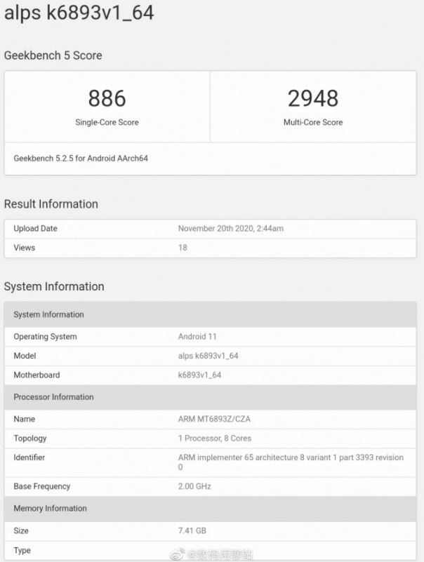البته باید خاطرنشان کرد که اعداد ثبت شده نشان دهنده عملکرد دقیق این تراشه نیستند. اما با این حال عملکرد قوی تراشه MT6893 غیرقابل انکار است. این تراشه دارای یک هسته اصلی Cortex-A78 با حداکثر سرعت 3.0 گیگاهرتز خواهد بود و در کنار سه هسته دیگر Cortex-A78 با فرکانس 2.6 گیگاهرتز و چهار هسته دیگر Cortex-A55 با بهره وری انرژی بالاتر، سرعت 2.0 گیگاهرتز را در اختیار کاربر قرار میدهد. این تراشه در بخش گرافیکی هم از Mali-G77 MC9 بهره میبرد.