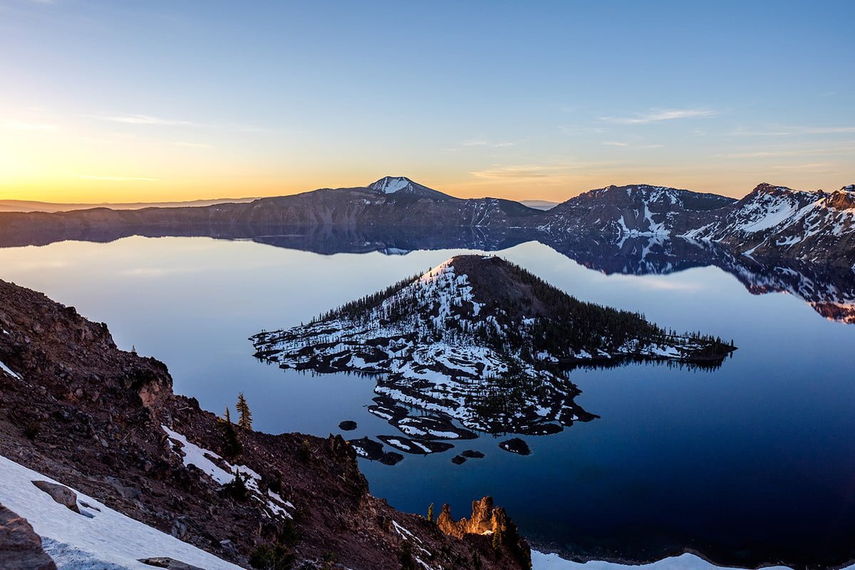 دریاچه کراتد در اورگان، عمیق ترین دریاچه در ایالات متحده است و به دلیل رنگ آبی روشن و شفافیت آب آن معروف است.