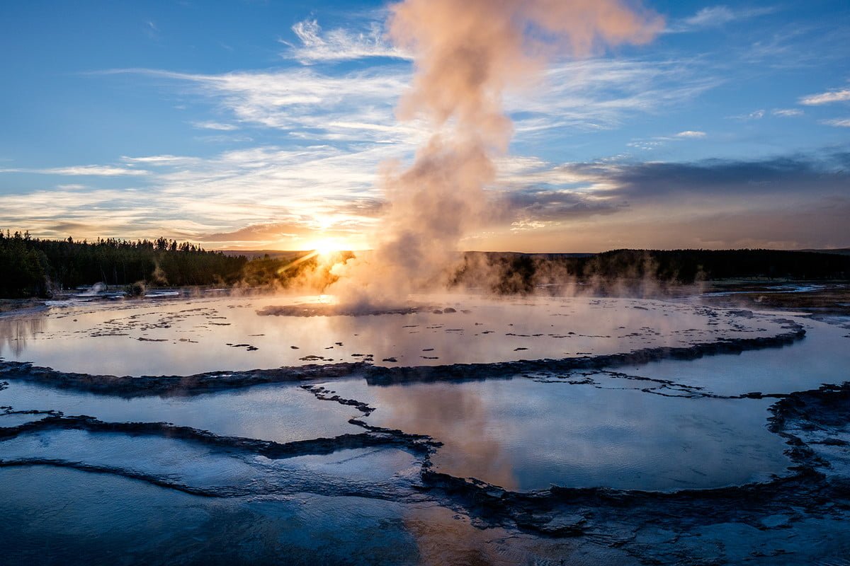 دهانه آتشفشان واقع در پارک ملی یلوستون که اولین پارک ملی ایالات متحده است و دارای یک شبکه گسترده از مناطق گرم در زمین مانند چشمه آب گرم، گلدان های گل جوشان و به طور منظم فوران آب فشان است.