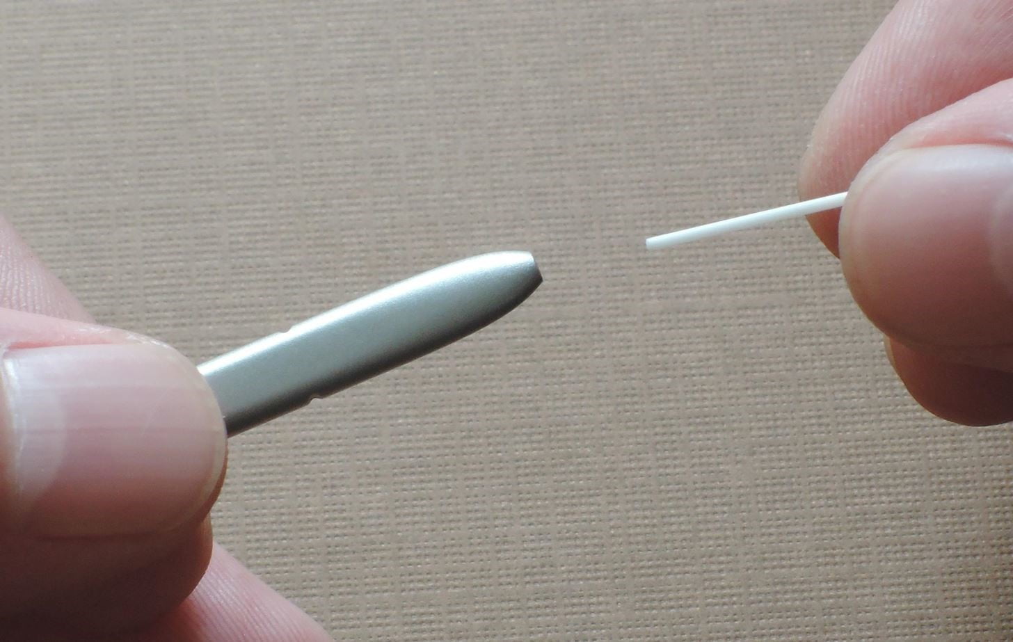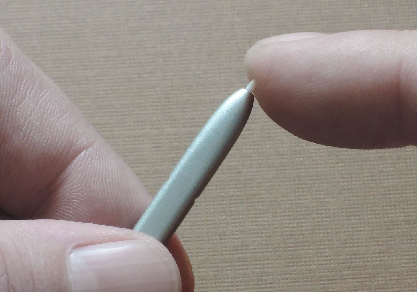 زمانی که نوک قلم در جای خود قرار گیری باید یک هشتم اینچ دیده شود. اگر نوک قلم شما مانند تصویر زیر به نظر می رسد کار تمام است.