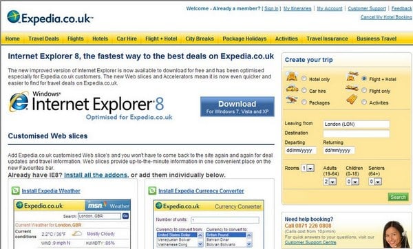 مايکروسافت براي برخي از سايتها نسخه سفارشي از اينترنت اکسپلورر هشت را ارائه داده است. اين نسخه سفارشي شامل برخي از قابليتها و امکاناتي است که سايت مورد نظر ارائه ميدهد. براي مثال نسخه Expedia به آدرس www.expedia.co.uk/ie8.aspx امکاناتي مانند ابزار تبديل واحد پول، ابزار جستوجوي هتلها و مشاهده وضعيت آب و هوا را روي اينترنت اکسپلورر ارائه ميکند. براي مشاهده تمامي نسخههاي سفارشي و بهينه شده اينترنت اکسپلورر به آدرس www.ieaddons.com/gb/browsers مراجعه کنيد.
