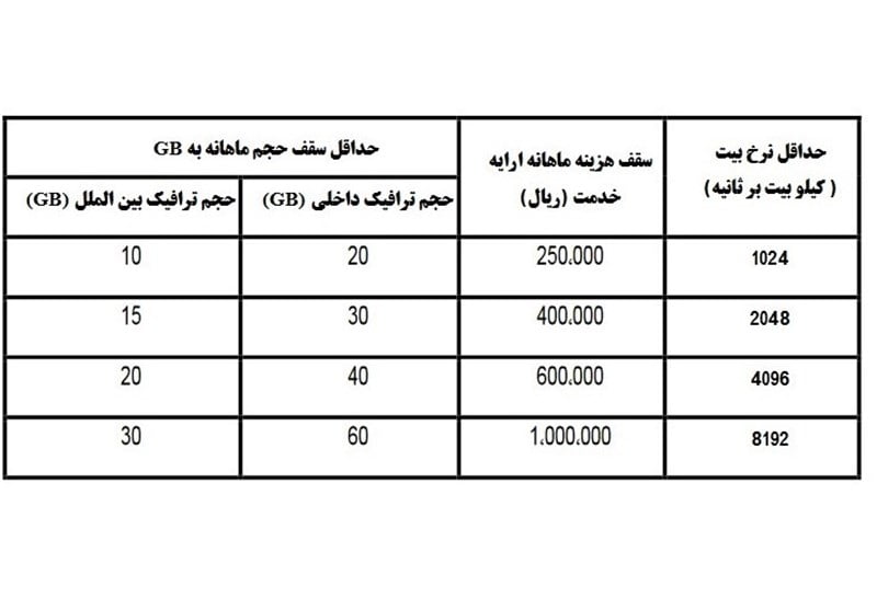همان طور که در جدول فوق نیز مشاهده می کنید، کاربران دیگر قادر به خرید اینترنت نامحدود نخواهند بود و سرویس های آنها به صورت سرویس بدون حجم تغییر نام پیدا کرده است. سرویس بدون حجم در واقع شکل دیگری از اینترنت حجمی است که در حال حاضر نیز به کاربران ارائه می شود. برای مثال در قانون جدید در صورتی که کاربران نرخ 1024 کیلوبیت بر ثانیه را از شرکت ها خریداری کنند خواهند توانست تا 20 گیگابایت از ترافیک داخلی یا 10 گیگابایت ترافیک بین المللی استفاده کنند و پس از پایان این سهمیه آنها می بایست نسبت به خرید اینترنت به صورت آزاد اقدام کنند. به نظر می رسد کاربران ایرانی اینترنت روزهای بسیار سختی را در آینده ای نزدیک در پیش خواهند داشت.