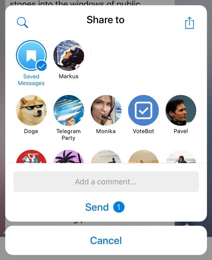 شما حالا می توانید پیام های مهم را به سرعت به پوشه Saved Messages منتقل کنید. این پوشه پیش تر (You) نام داشت که شما می توانستید هر پیام، تصویر، ویدئو و یا فایلی را در فضای ابری اختصاصی خود ذخیره کنید. حالا هر یک از مسیج های ذخیره شده گزینه “go to” را که شبیه به یک فلش در سمت راست مسیج ها است خواهند داشت که با لمس این گزینه، به منبع اصلی پیام ذخیره شده منتقل می شوید.