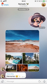 در نسخه 4.5 تلگرام حالا می توانید آلبومی از عکس های یا ویدئوها را برای دوستانتان ارسال کنید. در هر آلبوم حداکثر می توانید 10 عکس یا ویدئو ارسال و یا دریافت کنید که به صورت تصاویر ریز در صفحه شما نمایش داده می شود. به ازای دریافت یک آلبوم با 10 عکس شما تنها یک بار نوتفیکیشن دریافت میکنید، نه 10 بار.