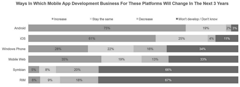 اکثر برنامه نویسان ویندوزفون بسیار به آینده ی این سیستم عامل خوش بین هستند. 28 در صد از آن ها انتظار دارند که در طول سه سال آینده رشد درآمد بیشتری داشته باشند و 16 در صد انتظار کاهش درآمد را دارند. همچنین 75 در صد توسعه دهندگان اندرویدی نیز انتظار رشد بیشتر در طول سه سال آینده را دارند و 19 در صد نیز کاهش درآمد را پیش بینی میکنند و 61 در صد توسعه دهندگان iOS به سه سال آینده خوش بین هستند و 25 در صد دید خوبی نسبت به آینده ی این سیستم عامل ندارند.