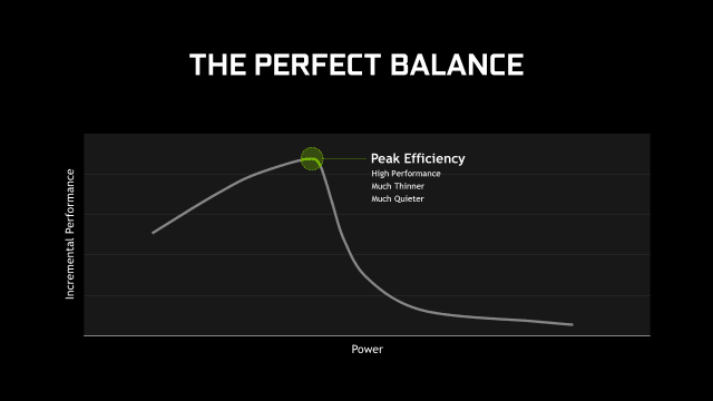 Max-Q قصد دارد بیشترین همپوشانی را بین توان پردازشی و عملکرد یک لپ تاپ ایجاد نماید. به گفته انویدیا، کارت های GTX 1080 در لپ تاپی که با تکنولوژی Max-Q ساخته می شود از نظر عملکردی تا 90 درصد یک کارت دسکتاپ و از نظر مصرف انرژی تنها نیمی از توان مورد نیاز کارت های دسکتاپ را به نمایش می گذارد. چنین دستاوردی بین 40 تا 50 درصد بهتر از همه لپ تاپ های گمینگ موجود در بازار خواهد بود. اما دلیل نیاز به همکاری مشترک تولید کنندگان و انویدیا نیز استفاده از طراحی بهتر برای حل مشکل افزایش دمای پیرامون کارت گرافیک، بهینه سازی مصرف انرژی و بهبود تنظیمات ویدیویی است. به گفته انویدیا در چنین شرایطی لپ تاپ ها می توانند ضخامتی معادل تنها 18 میلیمتر داشته و صدای تولیدی نیز به کمتر از 40 دسیبل خواهد رسید. این در حالیست که لپ تاپ های گیمینگ کنونی بیشتر از 40 تا 50 میلیمتر ضخامت داشته و صدای تولیدی آنها نیز فوق العاده زیاد است.