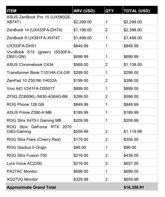 این شرکت 30 جایزه ارزنده را برای 30 برنده خوش شانس تدارک دیده است؛ اسامی برندگان تا 24 ژوئیه اعلام شده و این شرکت برای این منظور مبلغی بیش از 16 هزار دلار را کنار گذاشته است. در صورتی که در خارج از کشور زندگی می کنید، همین حالا هم فرصت شرکت در این برنامه را دارید. برای این منظور باید به شبکه های اجتماعی ایسوس مراجعه نمایید. این شرکت لیستی از جوایز خود را منتشر کرده است که در ادامه می توانید شاهد آنها باشید: