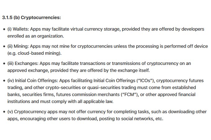 استخراج ارز دیجیتال نیازمند سخت افزار قدرتمند و مخصوص است که بتواند فرمول های پیچیده ریاضی را حل کند. رقابت زیادی بر سر حل این معادلات وجود دارد، این در حالیست که در بخش 2.4 دستور العمل های iOS آمده است که برنامه های شخص ثالث باید به صورت کارآمد از قدرت گوشی استفاده کنند، به سرعت باتری را تخلیه نکنند، باعث ایجاد گرما در گوشی نشوند و دستگاه را در معرض فشار های غیرضروری قرار ندهند. این بخش همچنین اعلام کرده است که هر برنامه شخص ثالثی که در فرآیندهای جانبی پس زمینه، کاری غیرمرتبط (مانند ماینینگ ) با وظیفه اصلی خود انجام دهد را مسدود خواهد کرد.
