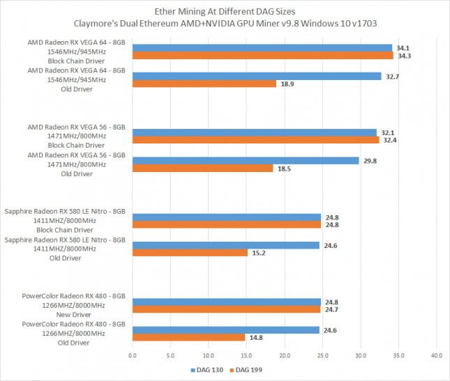 گرافیکهای AMD به خاطر نوع معماری پردازنده گرافیکی،توان مصرفی بالا و بهینه نبودن درایورها و بازیها با کارتهای وگا نتایج چشمگیری در بررسی ها بدست نیاوردند و نتوانستند معماری سال گذشته تیم سبز ( Nvidia ) را با چالش جدی روبرو کنند و احتمالا به خاطر استفاده از حافظه های HBM2 در کارتهای وگا امکان تخفیفهای ویژه و رقابت بوسیله قیمت برای تیم سرخ (AMD) چندان فراهم نیست از طرفی کارتهای سری 400 و 500 تیم سرخ بسیار مورد توجه ماینرها قرار گرفته به طوری که تقریبا نایاب شده یا با قیمت های گزافی عرضه می شوند. در صورتیکه درایورهای مخصوص ماینیگ بتواند کارتهای وگا را به یک محصول ویژه برای ماینرها تبدیل نمایند،تیم سرخ (AMD) می تواند بهره برداری خوبی از شرایط داشته باشد و شاید بهترین تصمیم ارایه درایور مخصوص ماینیگ باشد تا تیم سرخ (AMD) بتواند پردازندهای گرافیکی تولیدشده را به قیمت مناسب به فروش برساند ، شرکای تجاری خود را راضی کند و بخشی از هزینه های تحقیق و توسعه بخش گرافیک را تامین نمایدو احتمالا برای تعطیلات سال نو هم یک یا چند گرافیک میان رده معرفی نماید (مثلا تراشه گرافیکی که فاصله vega56 با RX580 را پرکند) تا نیمه پر رونق بازار( 200$ تا 300$ )را از دست ندهد