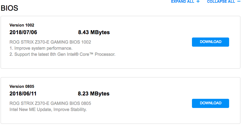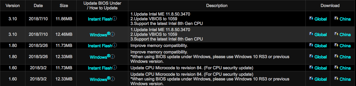 برخی شرکت های سازنده مادربرد، به تازگی آپدیتی را برای میان افزار بایوس مادربردهای خود منتشر کرده اند که احتمالا پشتیبانی از پردازنده های 8 هسته ای کافی لیک اس را در خود حمل می کند. این بروزرسانی برای مادربردهای مجهز به چیپست Z370 بوده و برخی تولید کنندگان به وضوح در بخش تغیرات انجام شده، پشتیبانی از پردازنده های جدید را ذکر کرده اند. پردازنده Intel Core i7 8086K نیز در بدو ورود خود با فرش قرمز اختصاص بایوس پذیرایی شد.