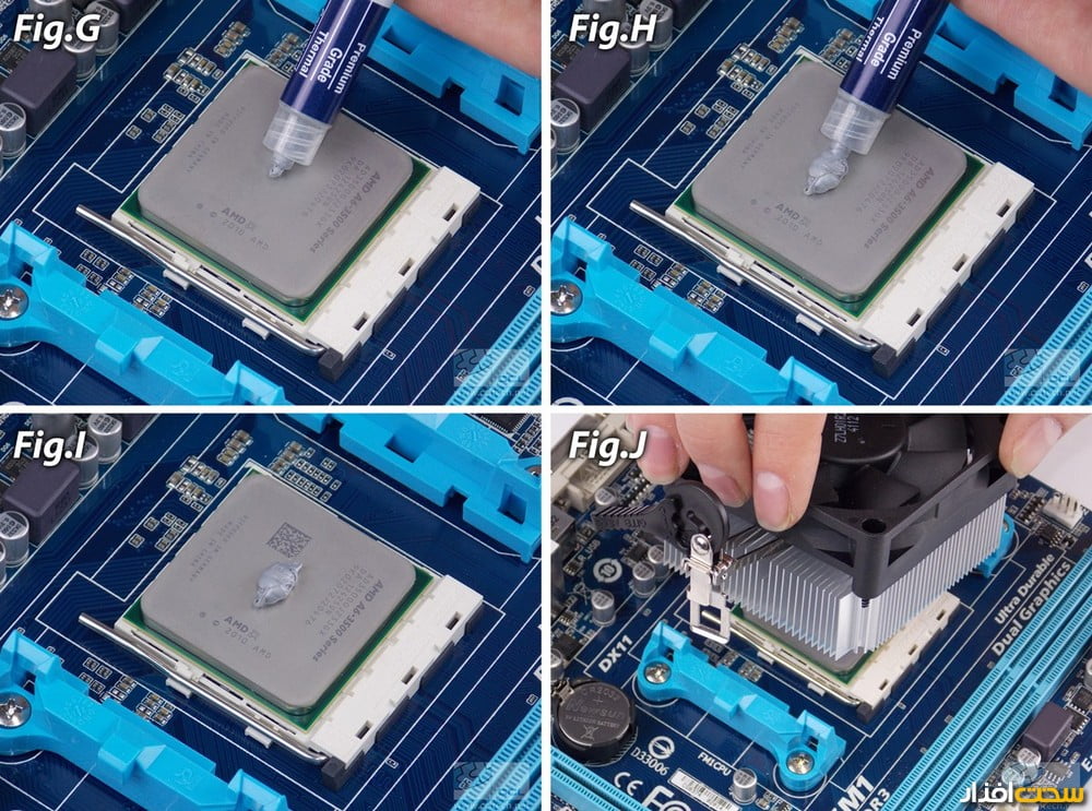 قرار دادن خمیر حرارتی روی پردازنده به صورت یک نقطه، مشکلی در کارایی به وجود نمی آورد و پس از نصب خنک کننده، خمیر حرارتی در اثر حرارت و فشار هیت سینک، به طور کامل روی سطح پردازنده را پوشش می دهد. البته باید دقت کنید که مقدار خمیر مورد استفاده، کمتر یا بیشتر از حد استاندارد نباشد. در صورتی که پس از انجام این مراحل، حرارت به نسبت بالایی داخل کیس شما وجود دارد، با نصب تعدادی فن روی خروجی و ورودی های کیس، تهویه هوا را بهبود بخشید. بهبود بخشیدن تهویه هوای کیس، به شدت روی خنک سازی قطعات موجود روی کیس تاثیرگذار است و همه کاربران باید این مسئله را جدی بگیرند.