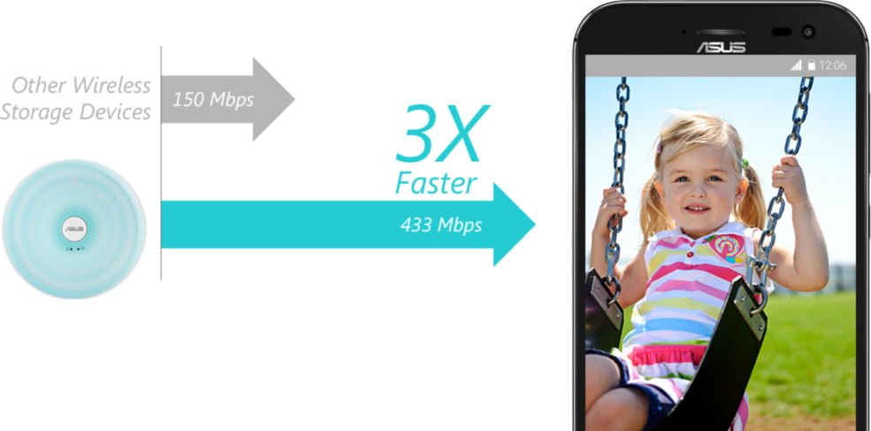ممکن است برایتان سرعت، امنیت و میزان مصرف بسیار مهم تر از حجم باشد. ایسوس برای شما در تولید TravelAir AC، تمامی نیاز ها را با اضافه کردن ذخیره ساز SSD و شبکه دو بانده برطرف کرده است. TravelAir AC با ابعاد بسیار کوچک می تواند تا 10 ساعت به طور مداوم تا 5 کاربر به طور همزمان سرویس دهی کند. با شبکه Wi-Fi دوبانده خود امکان دستیابی به سرعت 433Mb/s را که سه برابر سریعتر از دیگر دستگاه های ذخیره ساز است، را مهیا می کند. مصرف پایین، رابط NFC، و سازگاری با تمامی سیستم عامل های موجود از ویژگی های این دستگاه مفید است. تصور کنید که در یک محیط کوچک می خواهید داده ها را به صورت بی سیم به اشتراک بگذارید یا محتوای چند رسانه ای با کیفیت بالا را توسط تلویزیون های هوشمند تماشا کنید. به سادگی با TravelAir AC تمامی آنها قابل پیاده سازی است و فقط باید با نرم افزار ساده و کاربرپسند آن، محتوای خود را به دلخواه جابجا یا با دیگران به اشتراک بگذارید.
