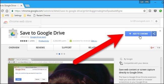 به آدرس Save to Google Drive extension page رفته و روی گزینه Add to Chrome کلیک کنید.