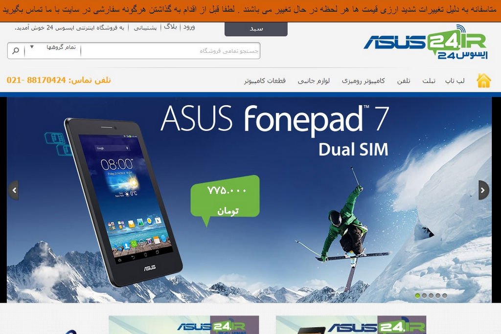 مدلی که در نظر داشتم، تبلت FonePad 7 ایسوس بود که علاوه بر پشتیبانی از سیمکارت، دارای قیمت معقولی بوده و امکانات مناسبی هم ارائه می دهد. قبل از رفتن به بازار به برخی از سایت ها سر زده بودم که البته بسیاری از آن ها این مدل را در اختیار نداشتند. سایت asus24 نیز با آنکه این تبلت را در لیست موجودی های خود قرار داده بود، اما از کاربران درخواست کرده تا قبل از خرید با آن ها تماس بگیرند.
