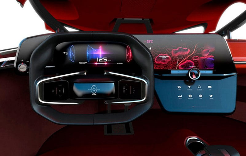 اگر کمی در دنیای طراحی خودرو سر رشته داشته باشید متوجه روح فرانسوی این خودرو خواهید شد، طول زیاد، زیبایی خیره کننده، جسارت و غرور از این دست علائم طراحی فرانسویست که بخوبی در این خودرو نمایان شده. با دیدن طراحی داخلی قرمز، حالت هجوم به بیننده القا میشود، و همانند سایر خودروهای کانسپت، جدای از طراحی آینده نگرانه آن، کمی هم از واقعیات طراحی رنو فاصله گرفته است، ولی از همین طرح سپر بزرگ و تو رفته جلوی خودرو، میتوان فهمید کار رنو است.