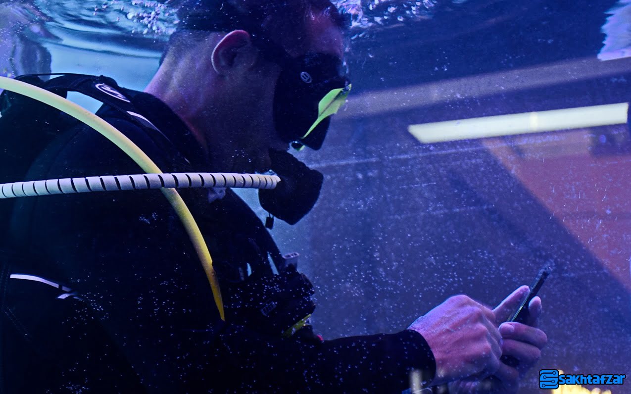 مهمانان بعد از ورود به ساختمان برای در دست گرفتن و تجربه کار با این پرچمداران به سالنی هدایت شدند که در آنجا گلکسی اس 8 و اس 8 پلاس به همراه لوازم جانبی کامل، به نمایش در آمده بودند. از آنجایی که مدتی قبل بررسی اس 8 را در وب سایت سخت افزار مگ قرار داده بودیم، بیشتر مشتاق آشنایی با لوازم جانبی ارائه شده برای این محصولات بودیم. یکی از مواردی که در این سالن جلب توجه می کرد آکواریوم بزرگی بود که در داخل آن فردی با لباس غواصی در حال کار کردن با اس 8 بود.