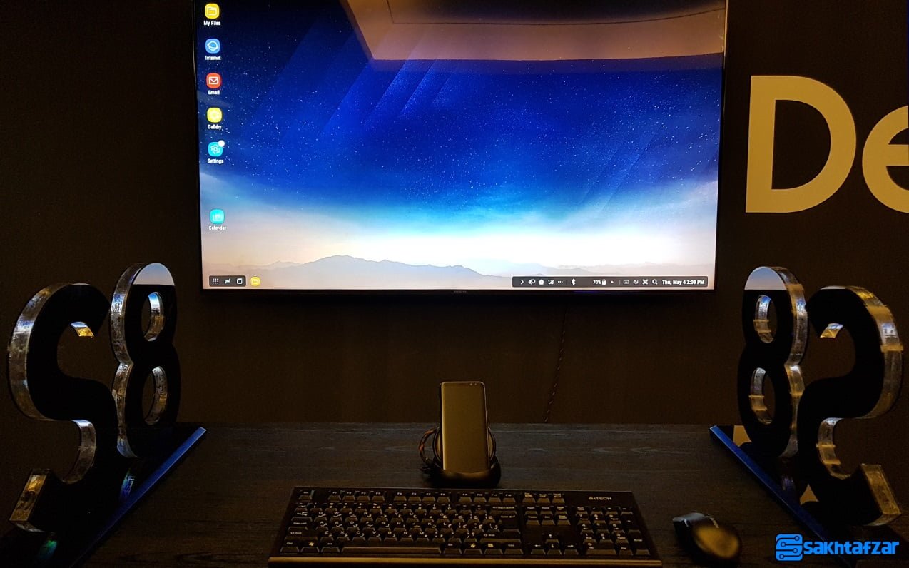 داک دکس سامسونگ محصولی است که با قرار دادن اس 8 یا اس 8 پلاس بروی آن می توان گوشی را به کامپیوتری تبدیل کرد. این داک از قدرت پردازشی بالای اس 8 استفاده کرده و با یک رابط کاربری جذاب و هماهنگ با دسکتاپ این کار را برای شما فراهم می کند. تنها کافی است گوشی را بروی داک قرار داده و مانیتور، صفحه کلید و ماوس را به داک متصل کنید.