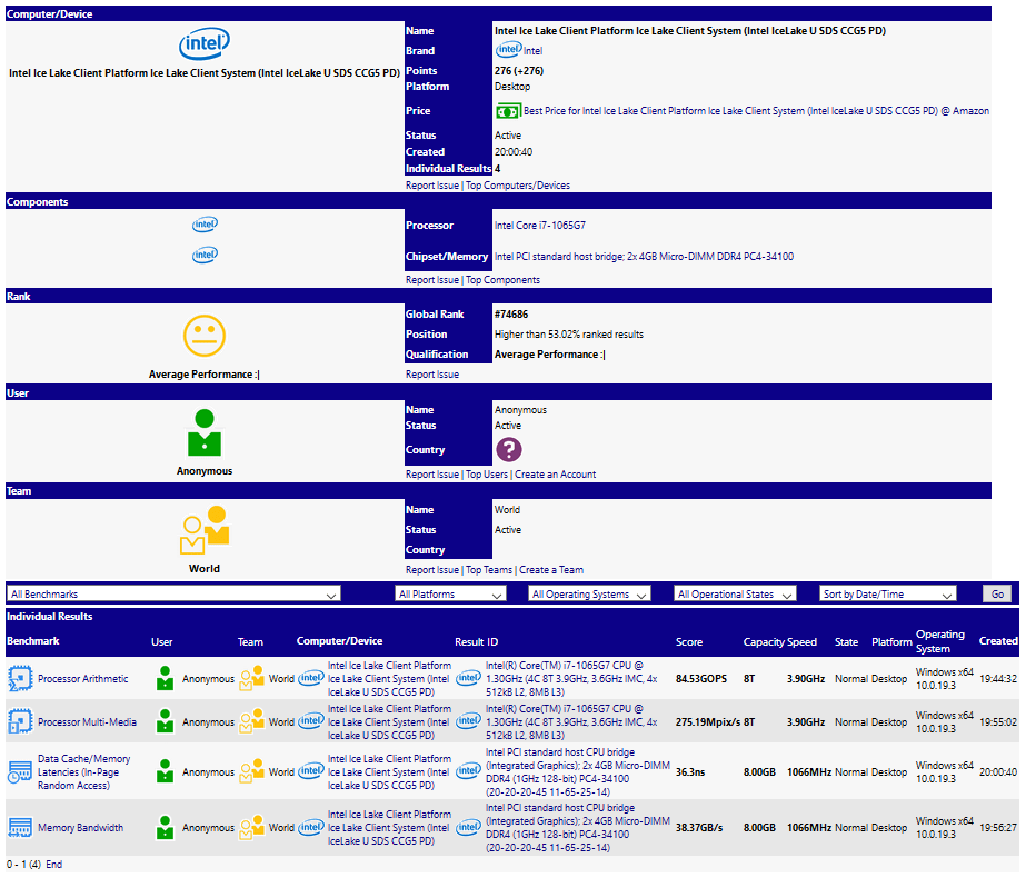 از هر چه که مطمئن نباشیم، مطمئن هستیم که نسل دهم این شرکت (Ice Lake-U)ها با لیتوگرافی 10 نانومتری عرضه خواهند شد. برخی مشخصات، لیتوگرافی و حتی توان احتمالی گرافیک مجتمع آنها را می دانیم؛ اما در مورد تاریخ عرضه دقیق بی اطلاع هستیم. پایگاه داده جنجالی SiSoft به تازگی اطلاعاتی را منتشر کرده است که نشان دهنده برخی مشخصات بوده و همچنین تاریخ عرضه هم در بین این داده ها دیده می شود.