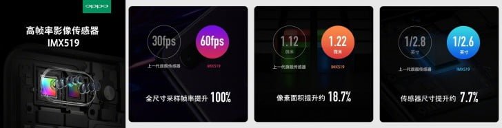 پیش از معرفی این گوشی، جزئیاتی در خصوص دوربین این گوشی منتشر شده است که شایعات قبلی پیرامون آن تأیید می کند. در ساخت این دوربین از سنسور IMX519 سونی استفاده شده است. این اولین بار است که این مدل خاص از سنسور سونی رسانه ای شده است، اما عکس های تبلیغاتی اوپو نشان میدهد که این سنسور (1.22 میکرون پیکسل و 1/2.6 اینچ) بزرگتر از سنسور IMX398 استفاده شده در اوپو R11 (با 1.12 میکروپیکسل و 1/2.8 اینچ) می باشد. علاوه بر مشخصات دوربین، همانطور که پیش تر در خبرها عنوان شده بود، این گوشی هم به احتمال قوی، مانند آیفون 10، شکافی در بالای نمایشگر خود برای دوربین سلفی، بلندگو و سنسور مجاورتی خواهد داشت.