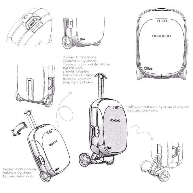زیتون، اولین چمدان هوشمند در جهان، میتواند به صاحب خود در مورد اضافه بار و حتی نبود زمان کافی هشدار دهد. و اگر فاصله تا گیت پرواز زیاد باشد با تبدیل شدن به سِگ‌وی (نوعی وسیله نقلیه شخصی متشکل از دو چرخ و یک محور: Segway) صاحب خود را تا مقصد برساند. با باتری این ربات میتوان تجهیزات الکتریکی قابل حمل را شارژ نمود.