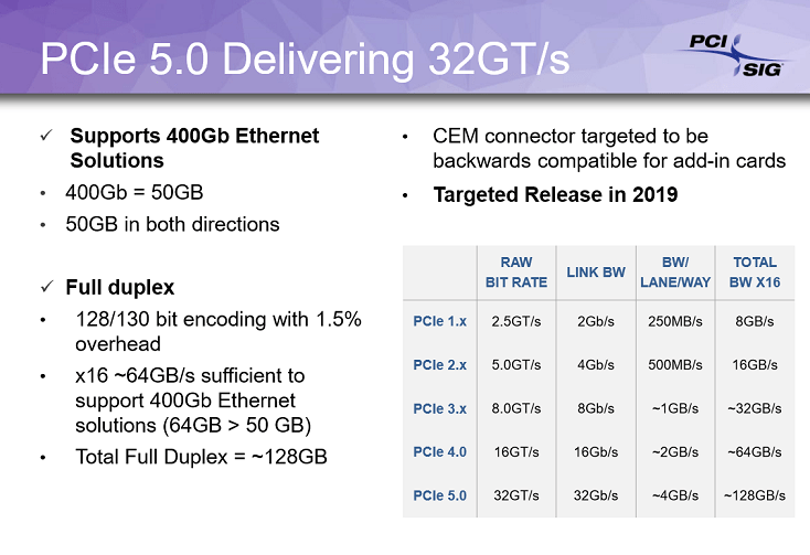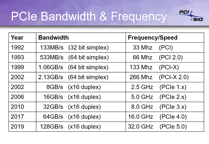 سازمان PCI-SIG اعلام کرد که پس از 7 سال، نسخه جدید رابط های توسعه ی سخت افزاری با نام PCI-Express 4.0 را تا پایان سال 2017 راهی بازار های سخت افزار خواهد کرد. پهنای باند در این رابط به دو برابر رسیده و 16GT/s است. یکی از پر استفاده ترین رابط های امروزی از مسیر PCIe، رابط های SSD M.2 هستند که دارای پهنای باند حداکثر 32 گیگابیت در ثانیه هستند. اما جالب است بدانید که PCI-SIG گزارش کرده است که اینبار برای ارائه یک نسخه پر سرعت، نیازی به صبر چند ساله نبوده و در سال 2019 یعنی 2 سال بعد از معرفی PCI-Express 4.0، نسخه 5.0 با پهنای باند نجومی 32GT/s معرفی خواهد شد.