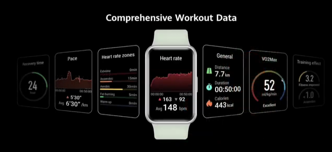 با توجه به استفاده از GPS در داخل این ساعت هوشمند و ادعای هوآوی به استفاده از بهترین GPS در بین تمام ساعتهای کنونی، Huawei Watch Fit قادر است تا به صورت دقیق مکان شما را دنبال و مسافت طی شده را به شما به طور دقیق نشان بدهد. بعد از دوییدن و انجام فعالیتهای ورزشی قادر خواهید بود تا دادههای زیادی از فعالیت روزانه خود را توسط این ساعت مشاهده کنید. مانیتور کامل فعالیتهای شما توسط این ساعت انجام خواهد شد و میتوانید کنترل کاملی بر روی فعالیتهای روزانه بدن خود با استفاده از این ساعت داشته باشید. سطح استرس بدن، مقدار ضربان قلب، مقدار زمان استراحت و یا خواب شما، تشخیص مقدار اکسیژن داخل خون شما و همچنین قابلیت اضافه کردن برنامه زمانی مشخص برای یادآوری کارهای مختلف از جمله قابلیتهای این ساعت هوشمند هستند.