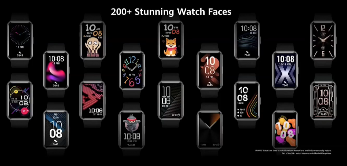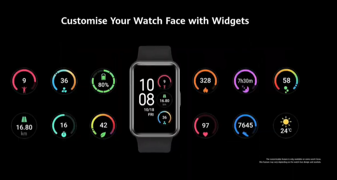 در خصوص شخصی سازی هوآوی سنگ تمام را برای این ساعت گذاشته است. به غیر از 200 حالت مختلف برای تنظیم تصویر پس زمینه، قادر هستید تا ویجتهای مختلفی را به صفحه اصلی خود اضافه نمایید. از جمله ویجتهای نشان دادن ضربان قلب، مقدار قدم برداشته شده، میزان باتری ساعت و… میباشند. همچنین قابلیت AOD یا همان Always On Display در این ساعت حضور پر رنگی دارد. جالب است بدانید که دستیار صوتی در این ساعت هوشمند قرار دارد و با استفاده از آن قادر به انجام انواع مانورهای نرم افزاری هستید. در کنار تمام این موارد قادر هستید تا از ساعت هوشمند Huawei Watch Fit به عنوان دکمه شاتر دوربین گوشی خود نیز استفاده کنید. صحبت از ویجت باتری شد، به گفته هوآوی این ساعت قادر است تا 10 روز بدون نیاز به شارژ عملکردهای مختلف کاربر را زیر نظر داشته باشد.