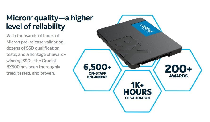 شرکت Crucial یک سری جدید از درایو های سالید خود، در خانواده میان رده ها را معرفی کرده است. این محصولات در رده مصرف کننده ساده (Entry Level) را تحت عنوان Crucial BX500 معرفی شده اند. سالید های Crucial BX500 در فرم 2.5 اینچی، دارای قیمت مناسب به نسبت عملکرد هستند. این خانواده از اینترفیس SATA III بهره برده و در ظرفیت های 120، 240 و 480 گیگابایت تولید می شوند.