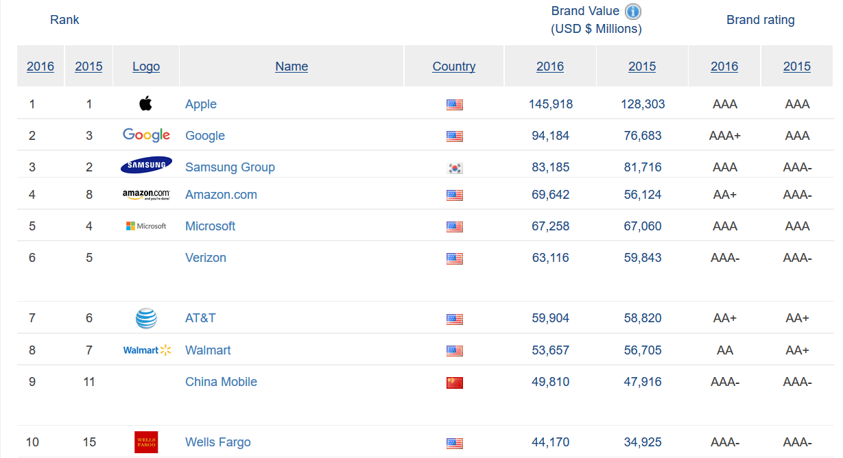 جواب این سوال منفی است اما با این حال ، سامسونگ تا رسیدن به افتخار با ارزش ترین کمپانی جهان فاصله ی چندانی ندارد. بر اساس نتایج بدست آمده از سوی Brand Finance، اکنون سامسونگ سومین کمپانی با ارزش در جهان است . اپل در رتبه ی اول قرار گرفته و گوگل نیز جایگاه دوم را در بین با ارزش ترین کمپانی های از آن خودکرده است. آمازون و مایکروسافت نیز با وجود تمام فشار هایی که در این مدت بر این کمپانی ها بوده است، جایگاه خود را به عنوان چهارمین و پنجمین کمپانی های با ارزش در جهان حفظ کرده اند. اما نکته ی جالب این گزارش، قرار گرفتن اوپراتور های ورایزون و At&T در جایگاه ششم و هفتم جدول است در حالی که اوپراتور های WalMart و China Mobile و سپس Wells Fargo به ترتیب جایگاه های هشتم تا دهم با ارزش ترین کمپانی جهان را تصاحب کرده اند.